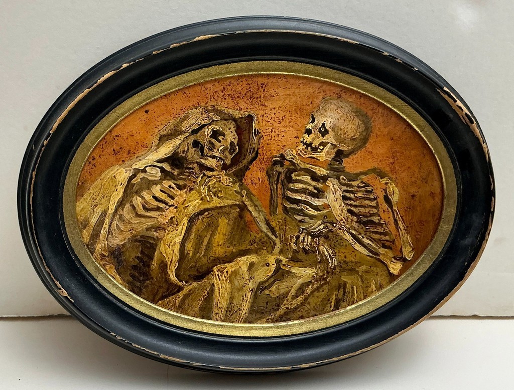 Antique Vanitas Painting Oil Panel Frame Signed 2nd Half of the 19th Ah1273