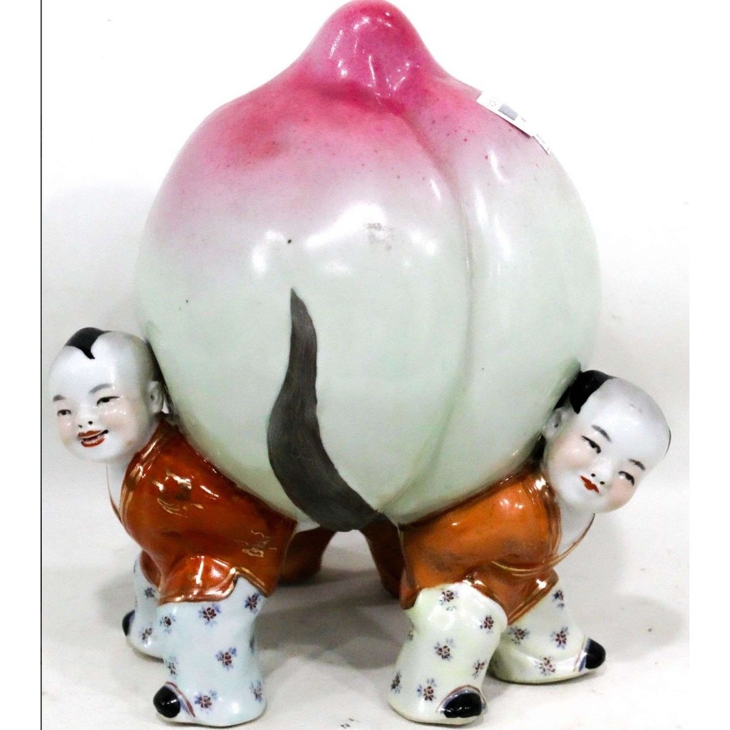 Fabulous 11 Famille Rose Boys With Large Peach Longevity Porcelain Figurine VTG