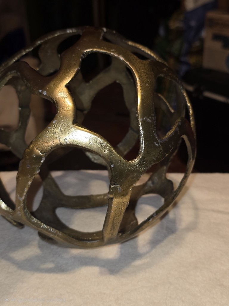 Metal Sphere Sculpture Brutalist Art Deco Gold Tone