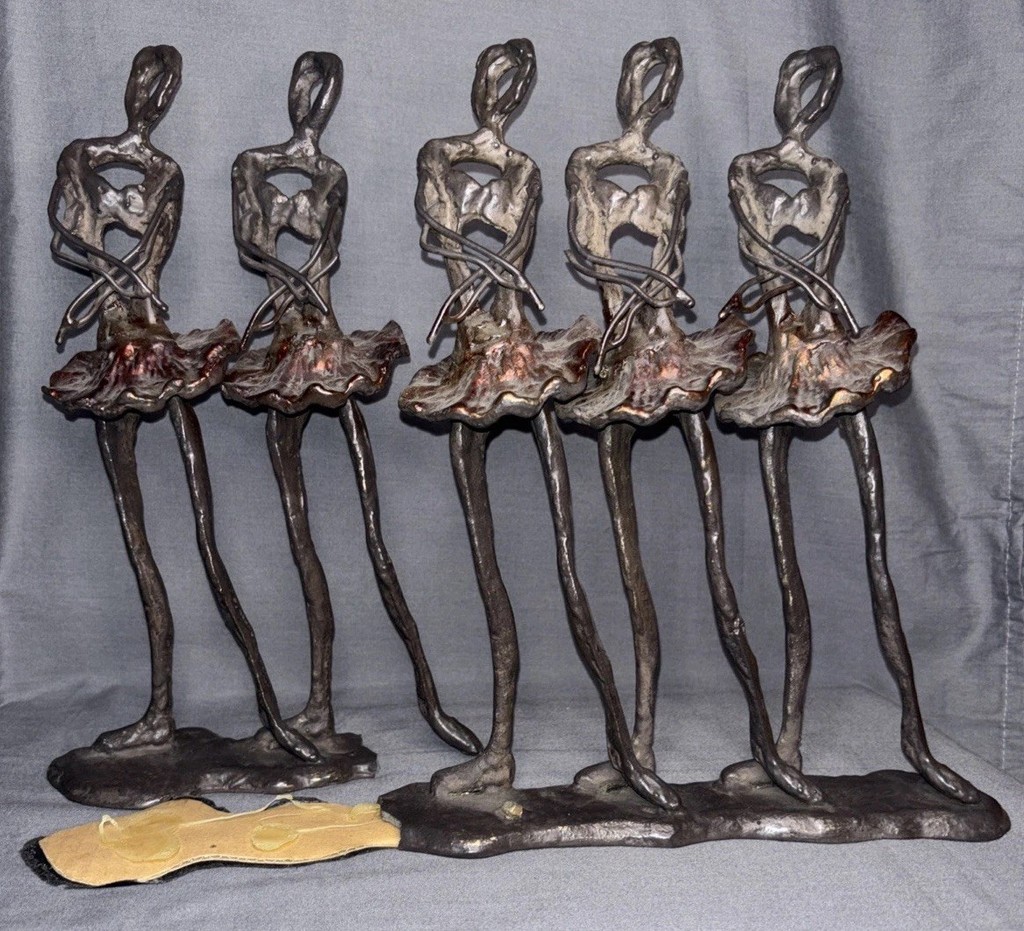 Vintage 5 Ballerinas Brutalist Mid Century Cast Metal Sculpture Heavy Flawed