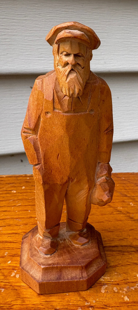 Vtg Folk Art Hand Carved Wood Carving Train Engineer Workman Jug - 5 Inches