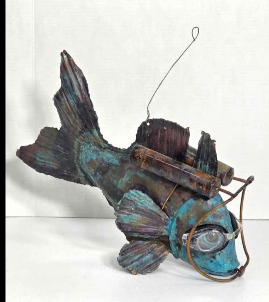 Ronald Lemoine Copper Scuba Fish Sculpture Metal Art Patina Finish