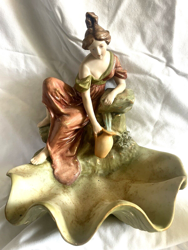 Rare Original Sculpture Maiden Drawing Water old Porcelain China Elaborate