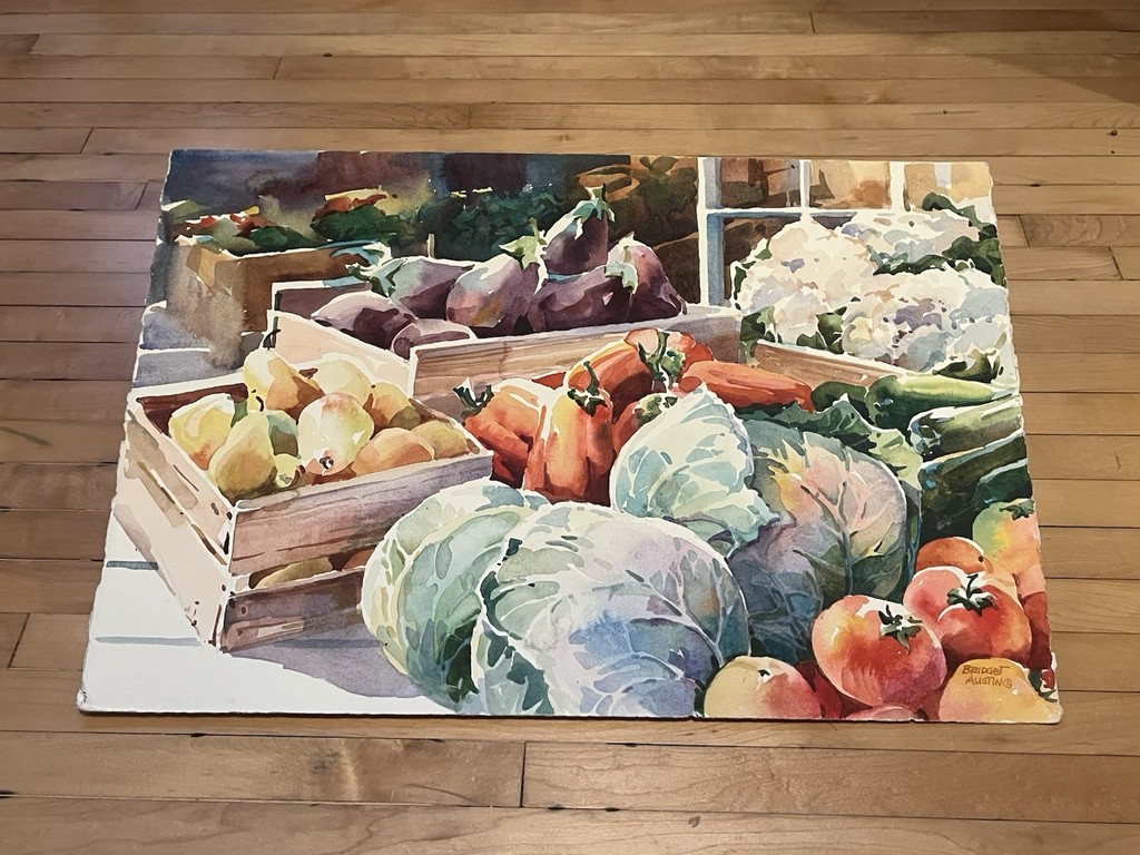 Original Watercolor Painting Bridget Austin Artist Signed French Farmers Market