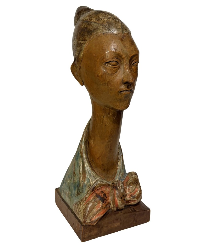 Italian Art Deco Porcelain Madonna Wood Base, Attributed to Guido Andlovitz