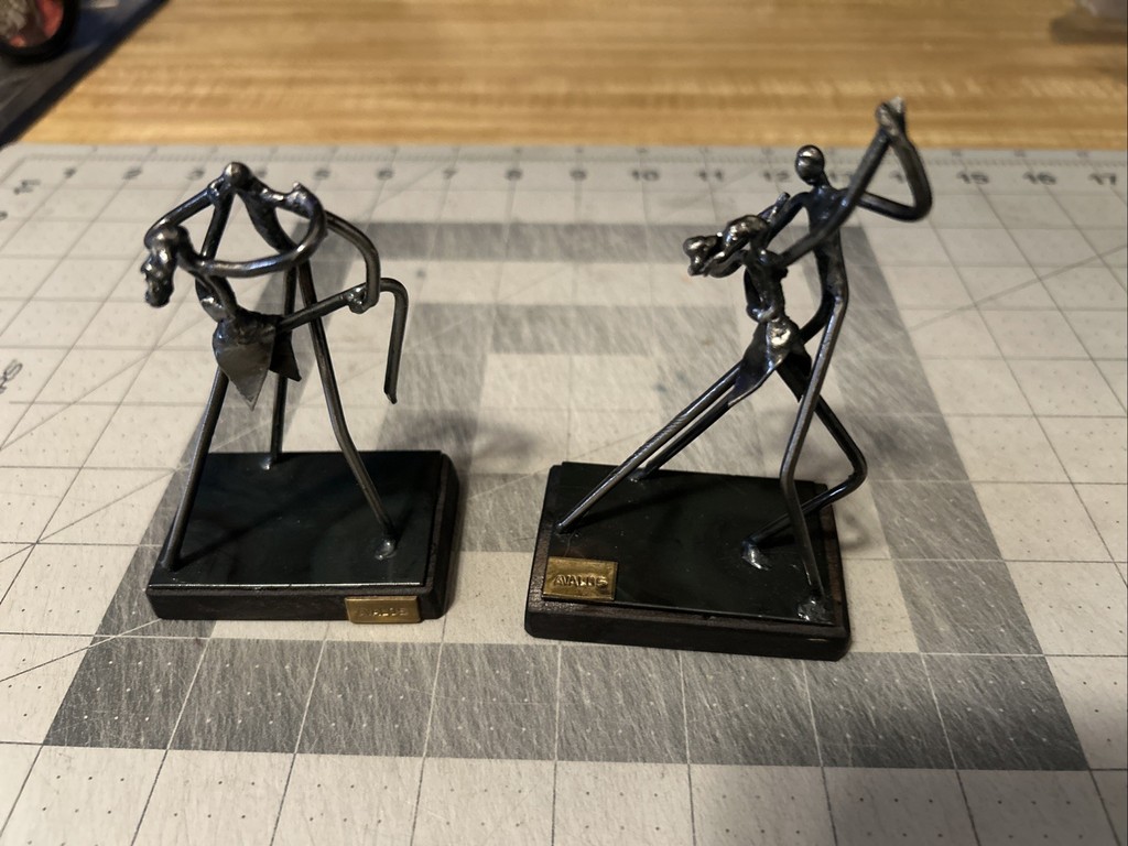 12.5 Vintage Art Nouveau Black Finish Ceramic Couple Dancing Kissing Statue