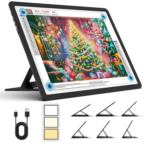 Heanolier Rechargeable A3 Light Board With Stand for Diamond Painting 5100 Lux Magnetic Light Pad With Side Buttons 5000mah Battery Wireless Light Box for Tracing LED Light Table for Sketching Drawing
